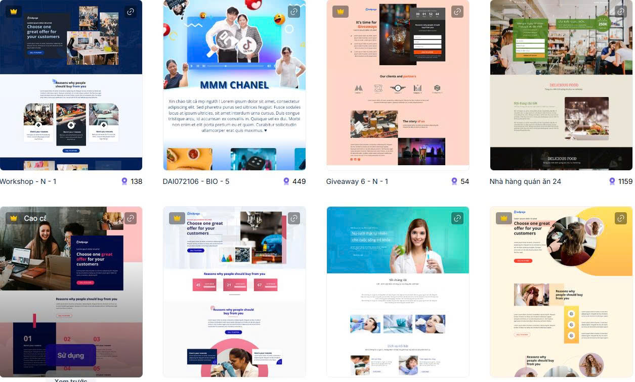 Sau một thời gian dài thử nghiệm, sửa – test – chạy – đo – tối ưu, tôi đã tổng hợp lại một bộ hơn 30 mẫu landing page đã được kiểm chứng thực tế, có tỷ lệ chuyển đổi cao, thiết kế đẹp mắt, chuyên nghiệp, dễ tùy chỉnh và đặc biệt là phù hợp với nhiều ngành nghề.